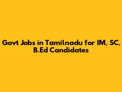 Govt Jobs In Tamilnadu For IM, SC, B.Ed Candidates