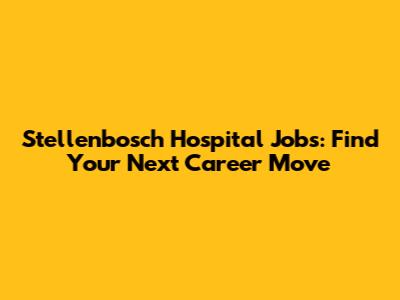 Stellenbosch Hospital Jobs: Find Your Next Career Move