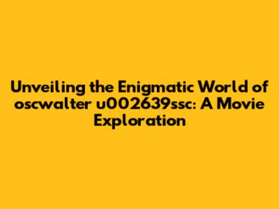 The Potential of oscwalter u002639ssc: Exploring the Movie's Story